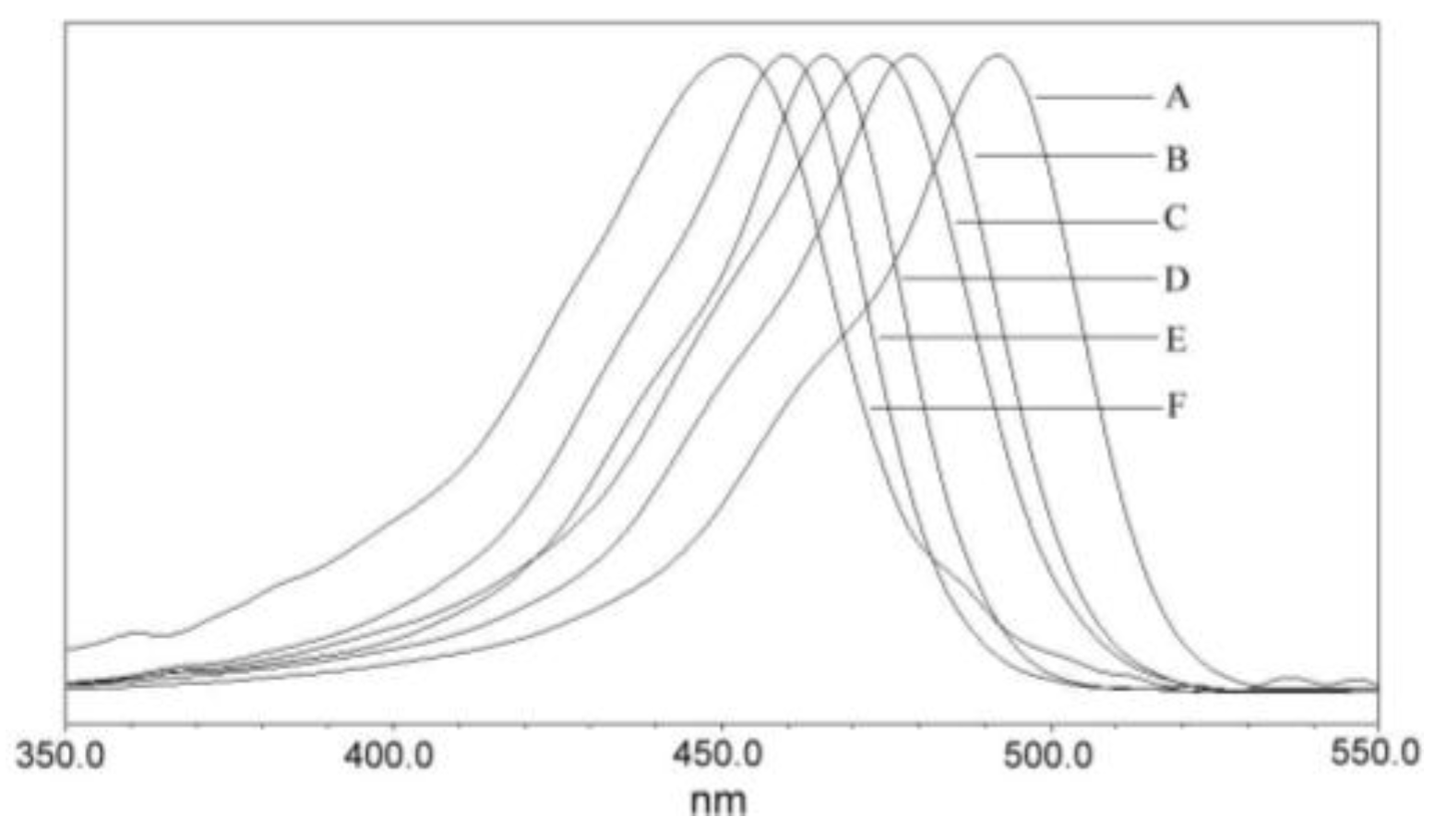 i.e., methyl groups were removed one by one, as confirmed by the gradual peak wavelength shifts toward the blue region). Considering the auxochromic property of the
