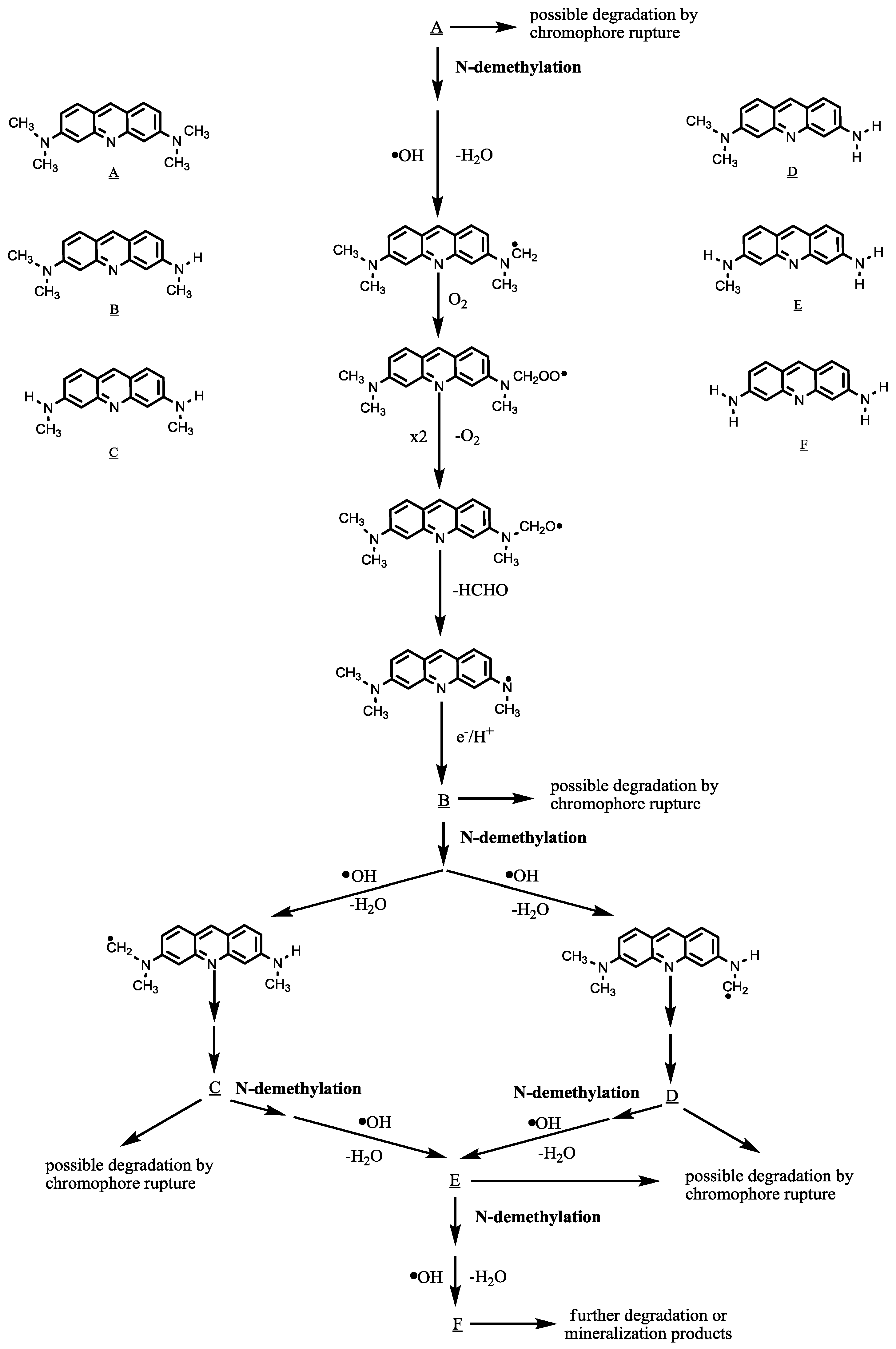 •OH species and be implicated in other similar events (H-atom abstraction, oxygen attack and the bimolecular Russell mechanism) to yield the bi-de-methylated intermediates, AO-MM and AO-D. The