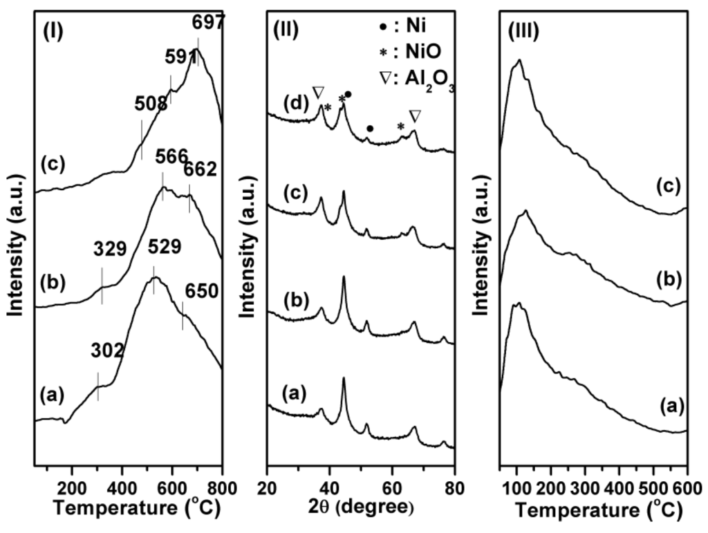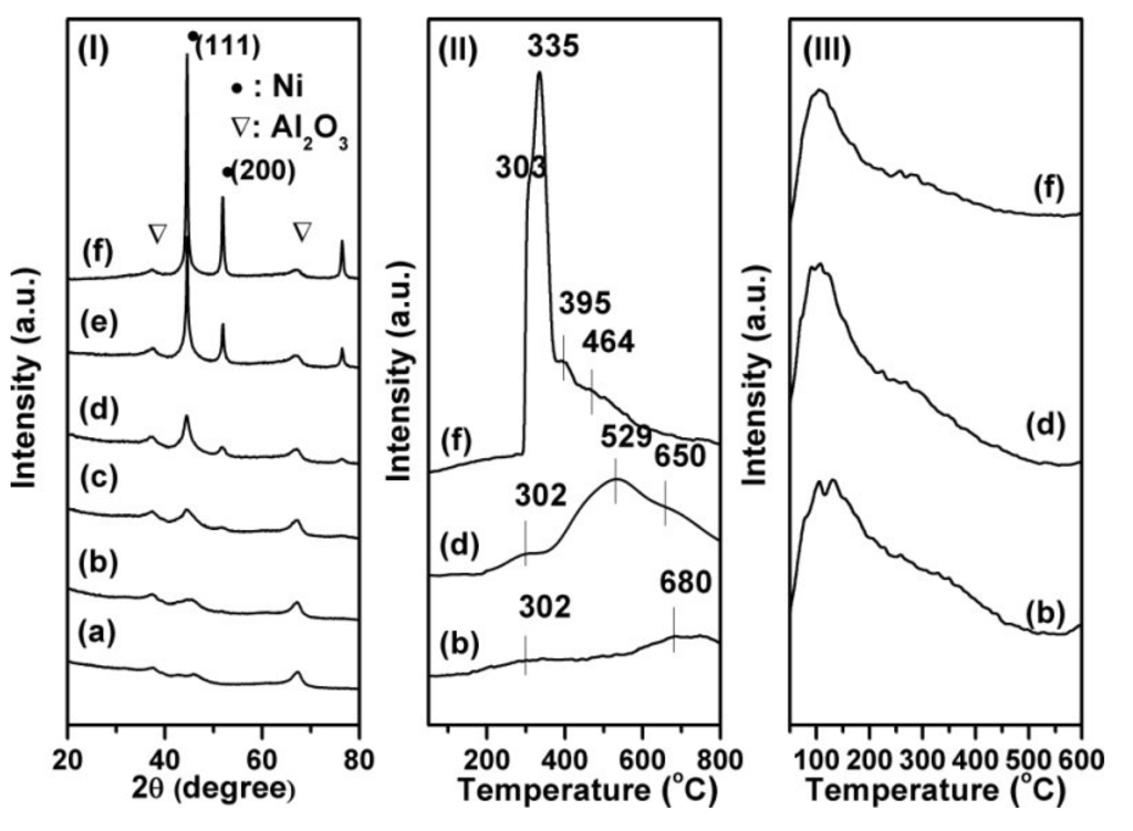 - Li, C.P.; Chen, Y.W. Temperature-programmed-reduction studies of nickel oxide/alumina catalysts: Effects of the preparation method. Thermochim. Acta 1995, 256, 457–465. [Google Scholar] [CrossRef]