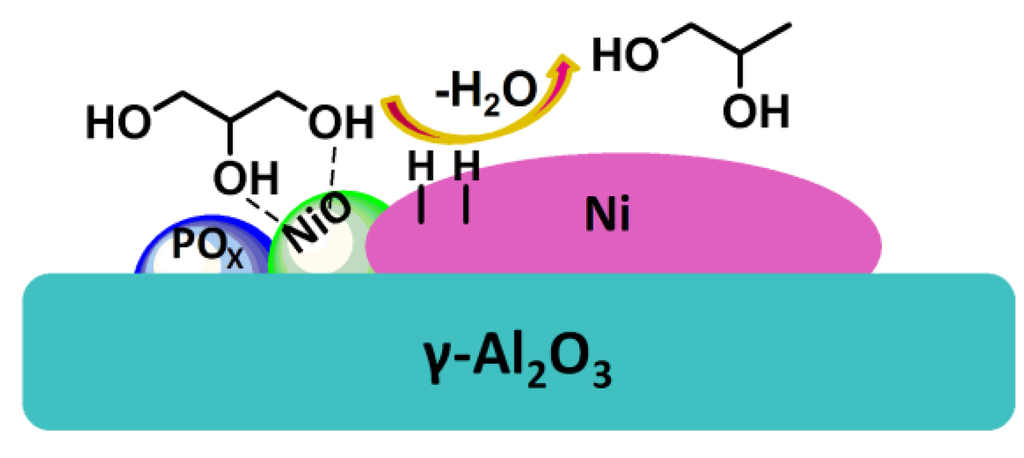 - Huang, J.H.; Chen, J.X. Comparison of Ni2P/SiO2 and Ni/SiO2 for hydrogenolysis of glycerol: A consideration of factors influencing catalyst activity and product selectivity. Chin. J. Catal. 2012, 33, 790–796. [Google Scholar] [CrossRef]