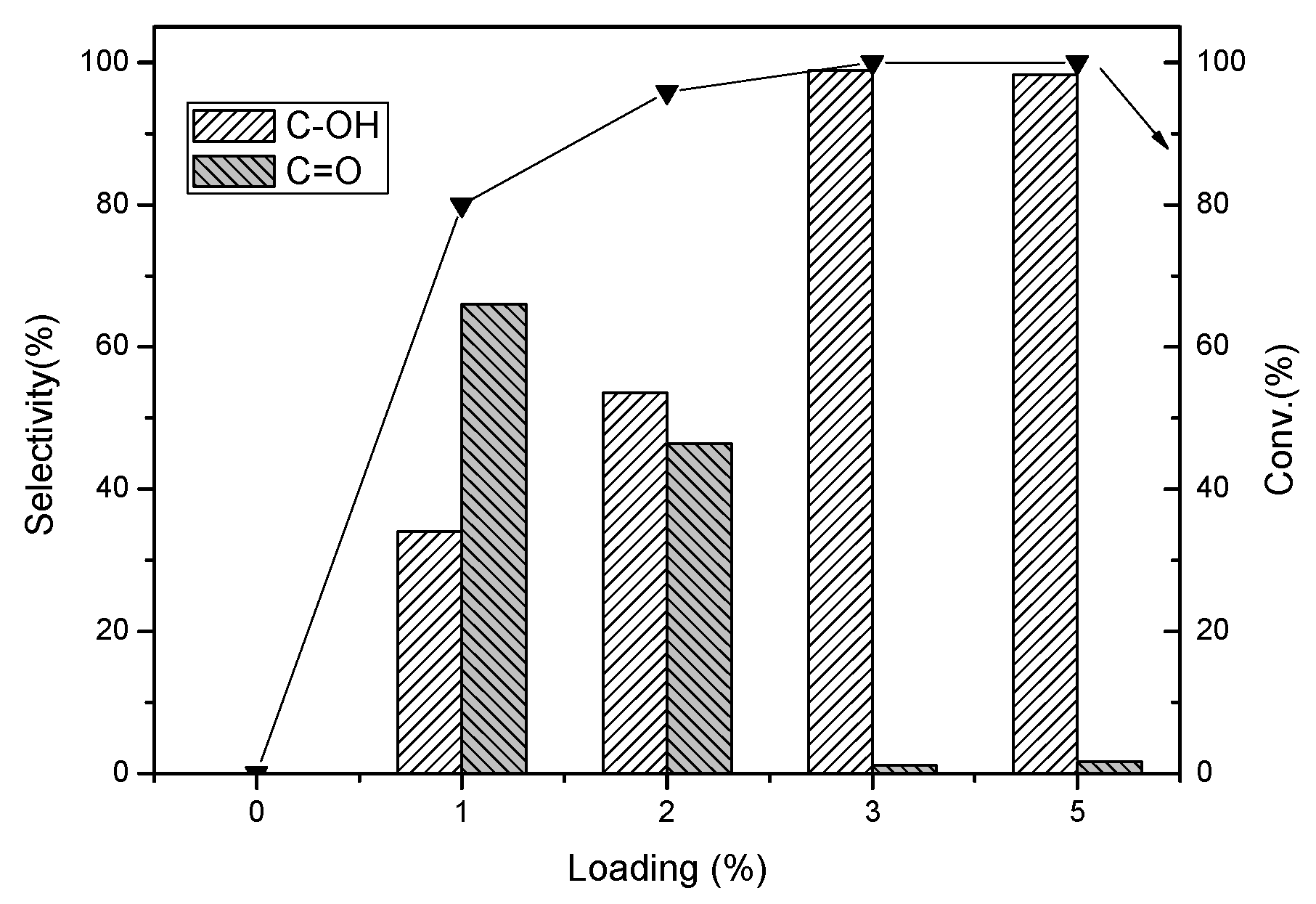 Effect of Pd loading on the hydrogenation of 4-ethylphenol. Reaction conditions: 25 mL H2O, 0.82 mmol 4-ethylphenol, 0.20g Pd/γ-Al2O3, 2 MPa H2, 12 h, 60 °C.