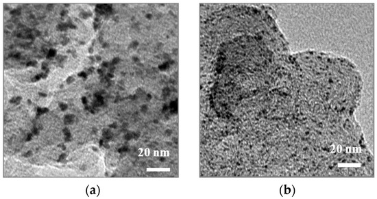 TEM images of (a) Pt/C; and (b) Pt–Ru/C catalysts.