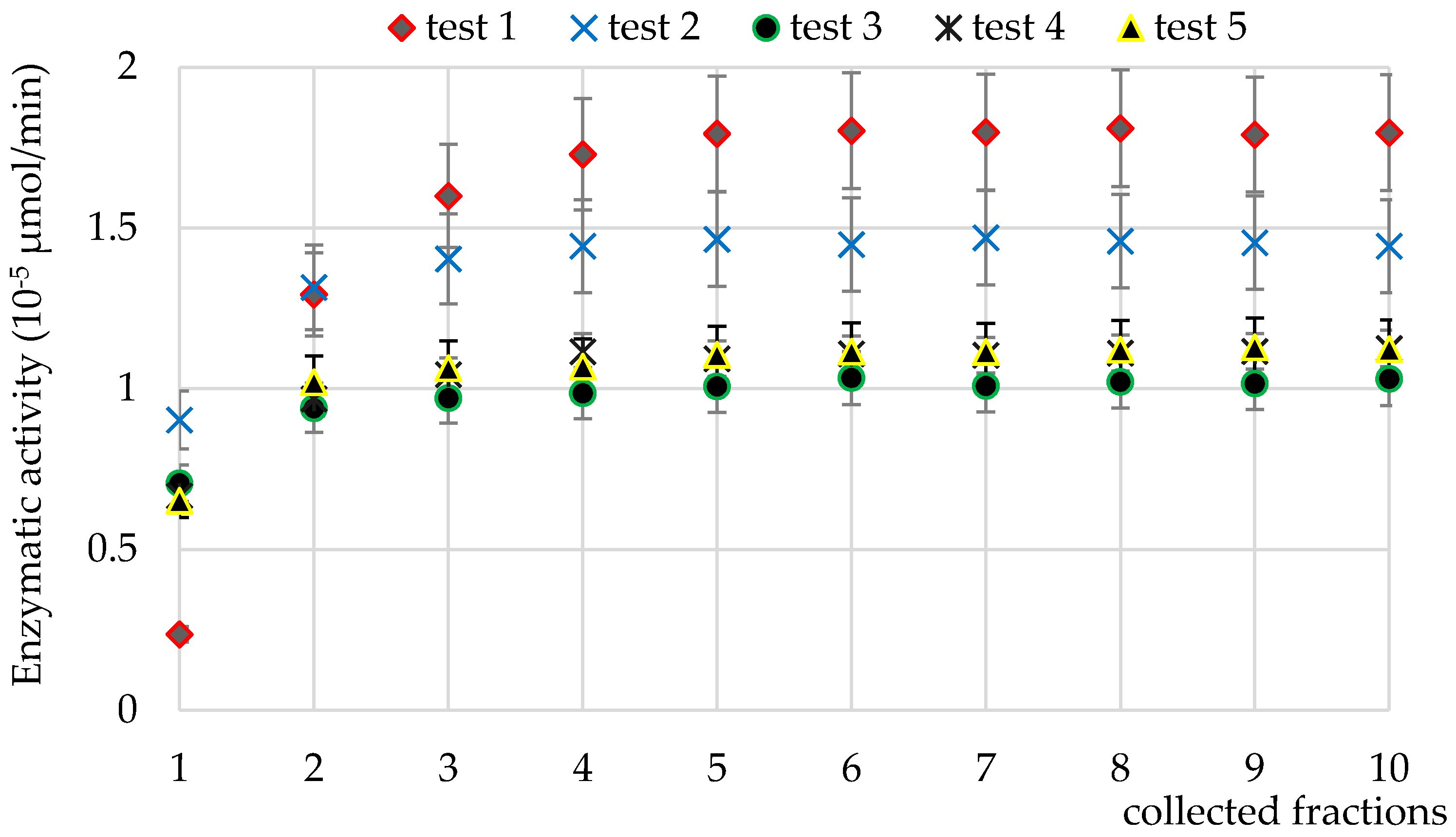 3.4. Conception of Microreactor with Immobilized Enzyme