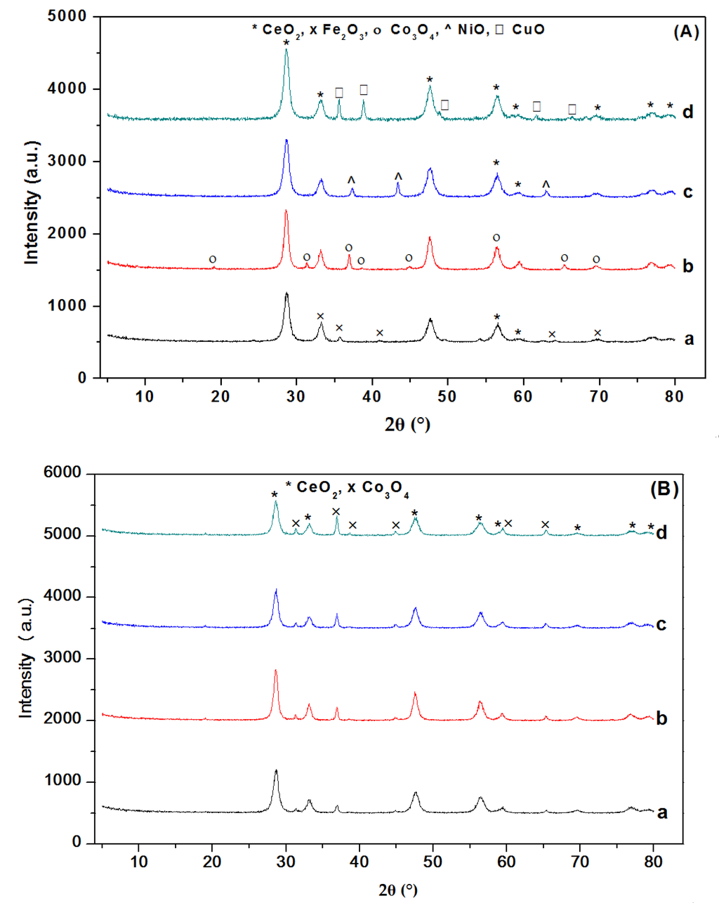 - Konsolakis, M.; Sgourakis, M.; Carabineiro, S.A.C. Surface and redox properties of cobalt–ceria binary oxides: On the Effect of Co Content and Pretreatment Conditions. Appl. Surf. Sci. 2015, 341, 48–54. [Google Scholar] [CrossRef]