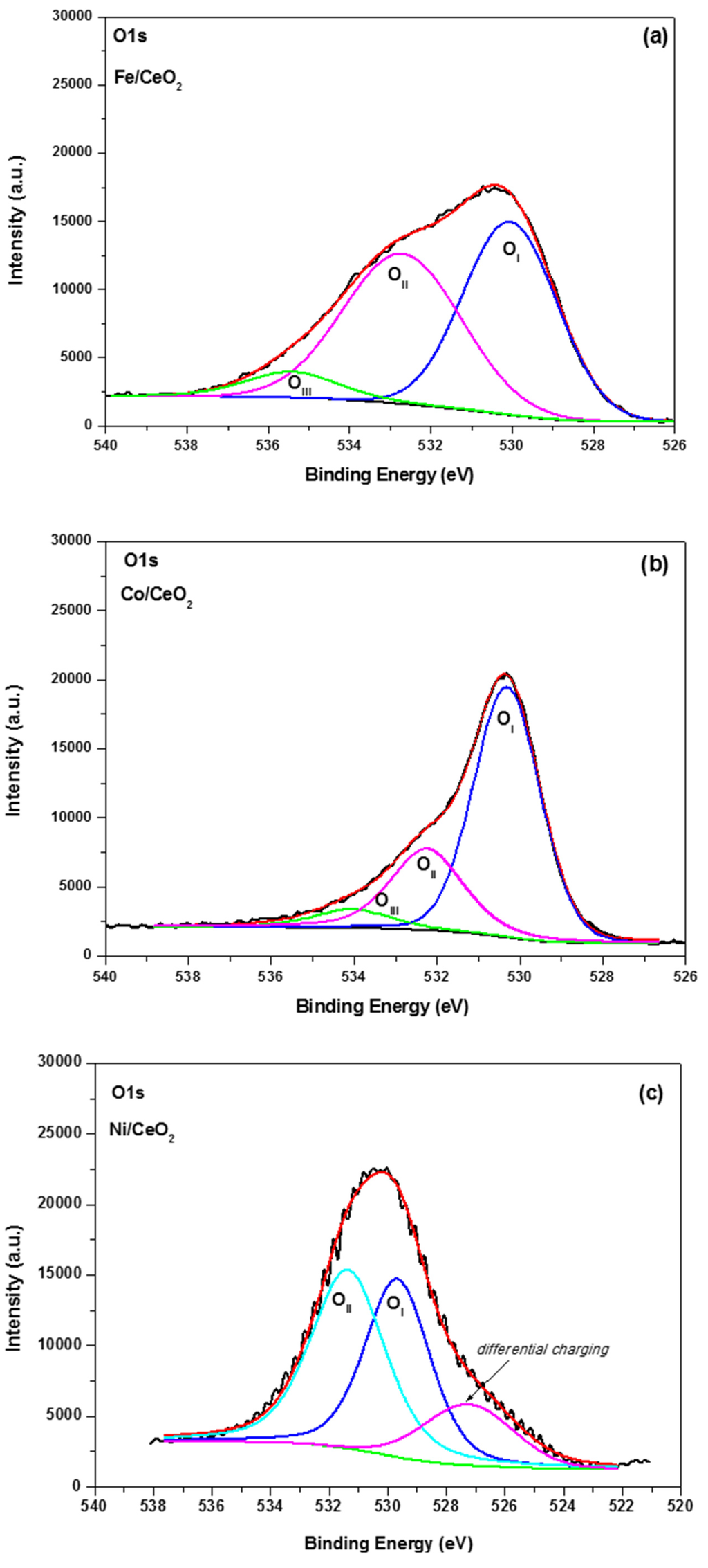 | Fe/CeO2 | 7.7 | 29.6 | 62.7 | 0.26 | 15.6 | 20.3 | 64.1 | 0.77 |