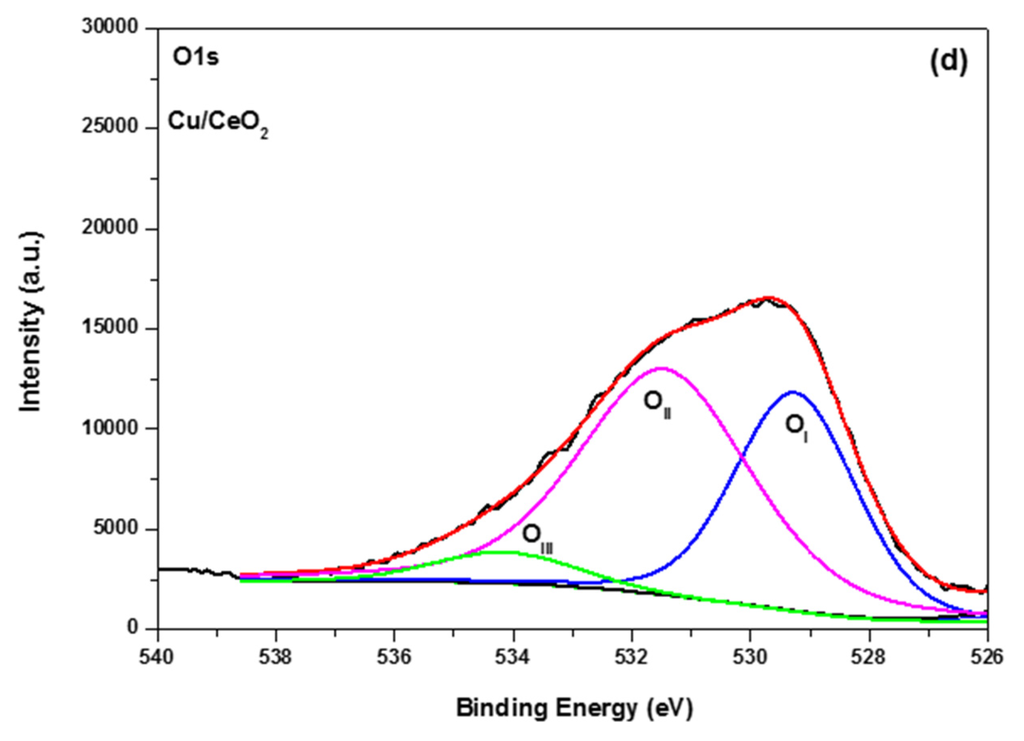 - Tang, X.; Zhang, B.; Li, Y.; Xu, Y.; Xin, Q.; Shen, W. CuO/CeO2 catalysts: Redox Features and Catalytic Behaviors. Appl. Catal. A 2005, 288, 116–125. [Google Scholar] [CrossRef]