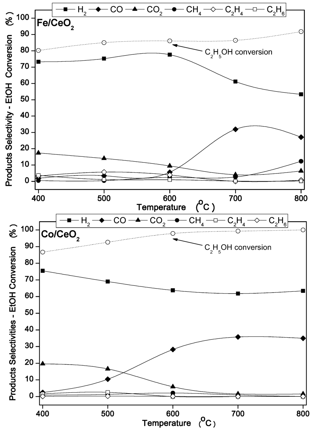 - Song, H.; Ozkan, U.S. Ethanol steam reforming over Co-based catalysts: Role of Oxygen Mobility. J. Catal. 2009, 261, 66–74. [Google Scholar] [CrossRef]