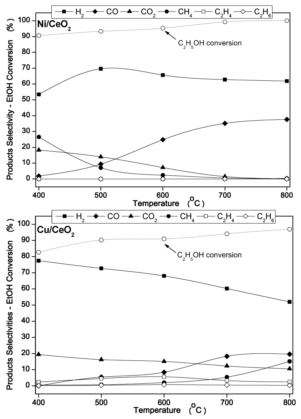 - Xu, W.; Liu, Z.; Johnston-Peck, A.C.; Senanayake, S.D.; Zhou, G.; Stacchiola, D.J.; Stach, E.A.; Rodriguez, J.A. Steam reforming of ethanol on Ni/CeO2: Reaction Pathway and Interaction between Ni and the CeO2 Support. ACS Catal. 2013, 3, 975–984. [Google Scholar] [CrossRef]