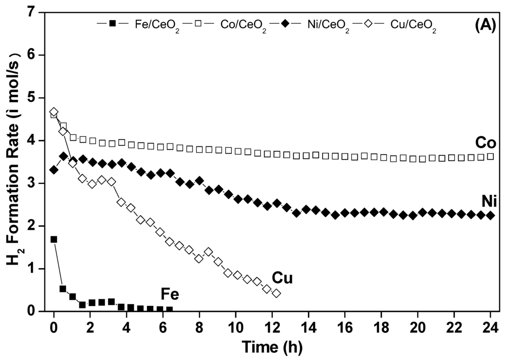Konsolakis, M.; Ioakimidis, Z.; Kraia, T.; Marnellos, G.E. Hydrogen Production by Ethanol Steam Reforming (ESR) over CeO2 Supported Transition Metal (Fe, Co, Ni, Cu) Catalysts: Insight into the Structure-Activity Relationship. Catalysts 2016, 6, 39. https://doi.org/10.3390/catal6030039