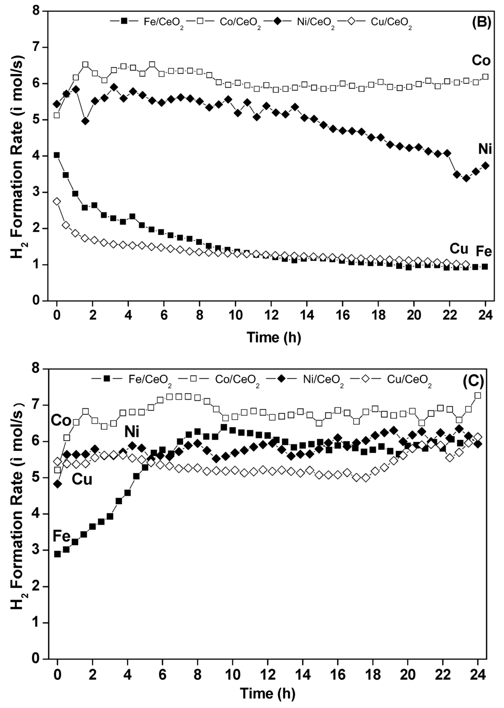 2.2.1. Effect of Metal Entity on Steam Reforming Performance