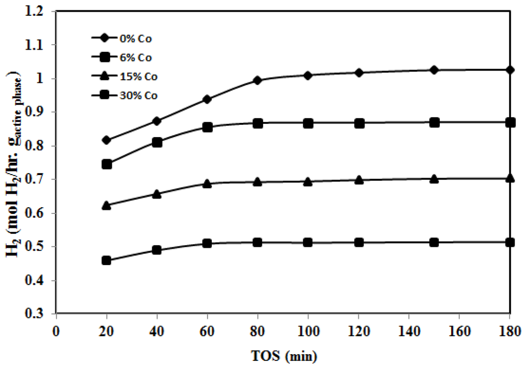 Bayat et al. [] employed iron promoted nickel catalysts supported on nanocrystalline gamma alumina as a catalyst for methane decomposition to produce CO-free hydrogen and carbon nano-fibers using a fixed bed reactor. The results have revealed that Fe addition to nickel has improved catalyst stability since carbon diffusion is enhanced reducing the encapsulating carbon formation.