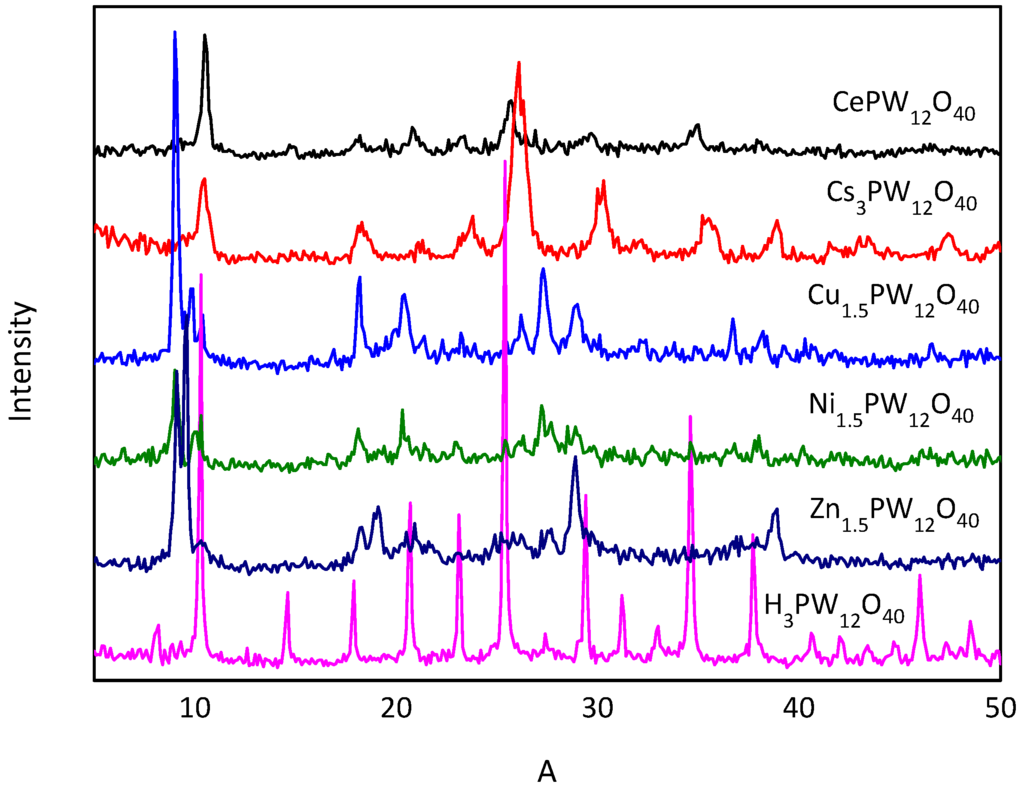 XRD patterns of heteropolyacid salts.