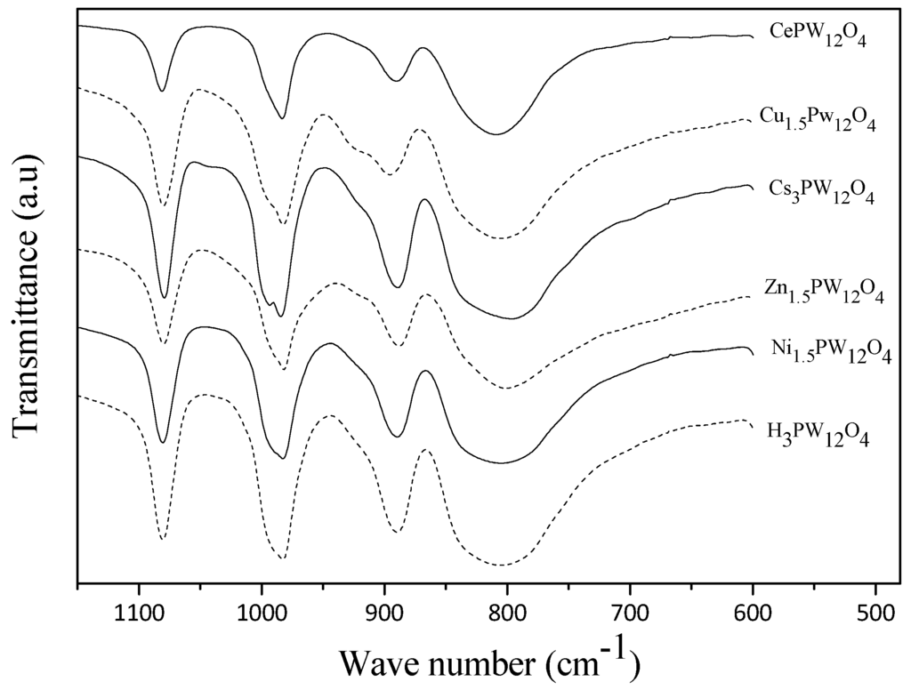 FTIR spectra of heteropolyacid salts.