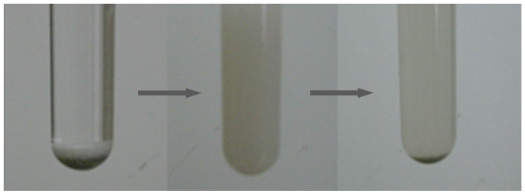 Different protic (butanols) and aprotic (MIBK, DMSO, etc.) solvents were employed in the dehydration of fructose with CePW12O40 as the catalyst (Table 1, entries 11–15). Protic solvents performed better than the aprotic ones and sec-butanol was determined to be the most efficient solvent (Table 1, entry 15), showing that CePW12O40 exhibited the highest catalytic activity in the fructose conversion among the protic solvents. Moreover, the CePW12O40-sec-butanol combination behaved as a thermoregulated system and there was a phase change from heterogeneous towards homogeneous catalysis during the reaction (Figure 3). After cooling down, the reaction solution turned heterogeneous again and the catalysts could be removed from the reaction mixture by simple filtration.