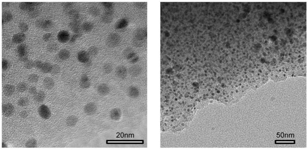 HRTEM micrographs of the fresh Ni/C catalyst.