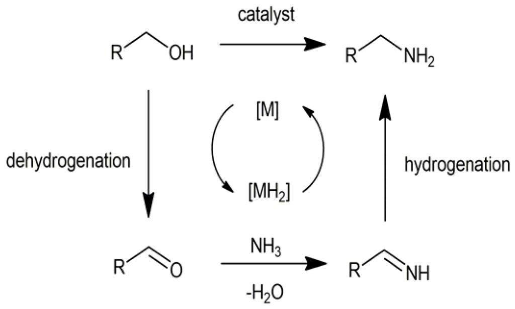 - Gunanathan, C.; Milstein, D. Selective synthesis of primary amines directly from alcohols and ammonia. Angew. Chem. Int. Ed. 2008, 120, 8789–8792. [Google Scholar] [CrossRef]