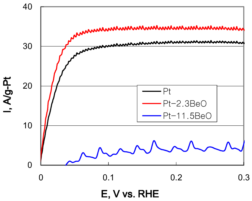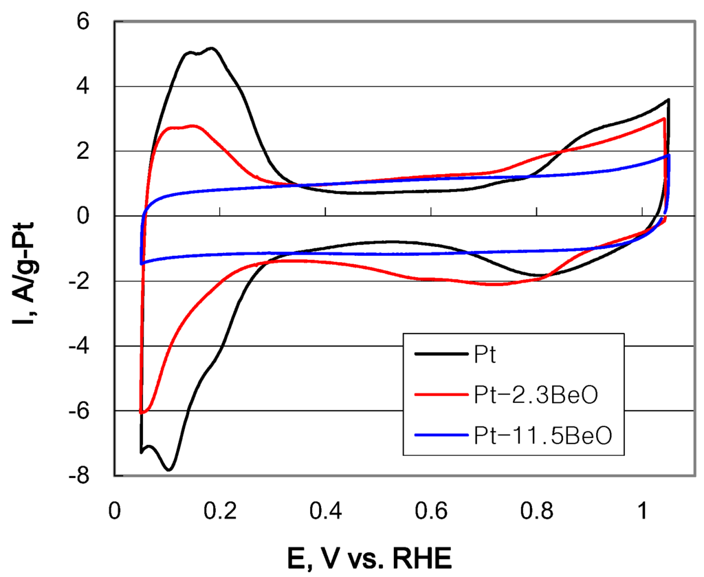 2.2. Electrochemical Properties of Carbon-Supported Pt–BeO