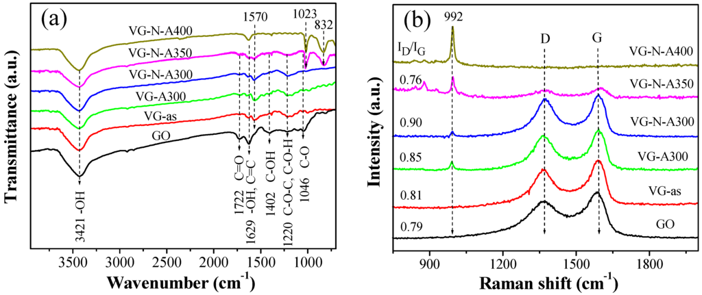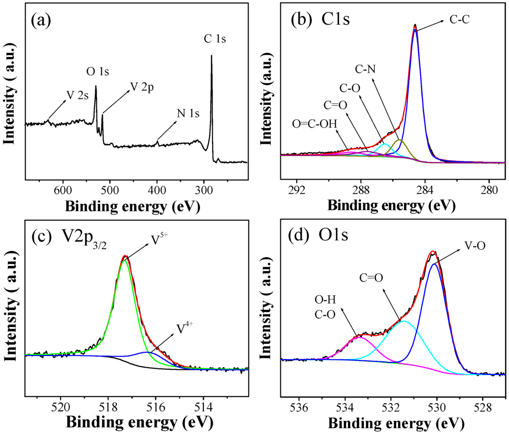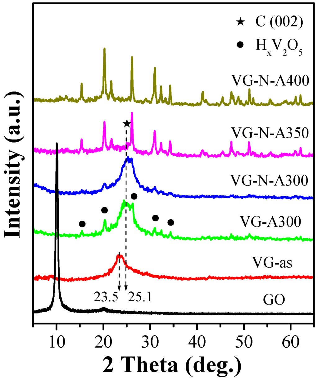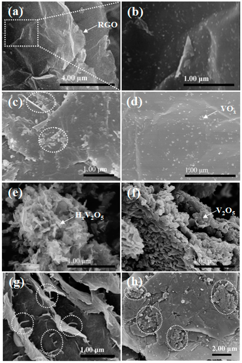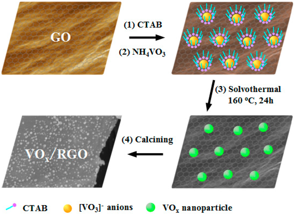 2.1. Synthesis and Characterization of VOx/RGO Composites