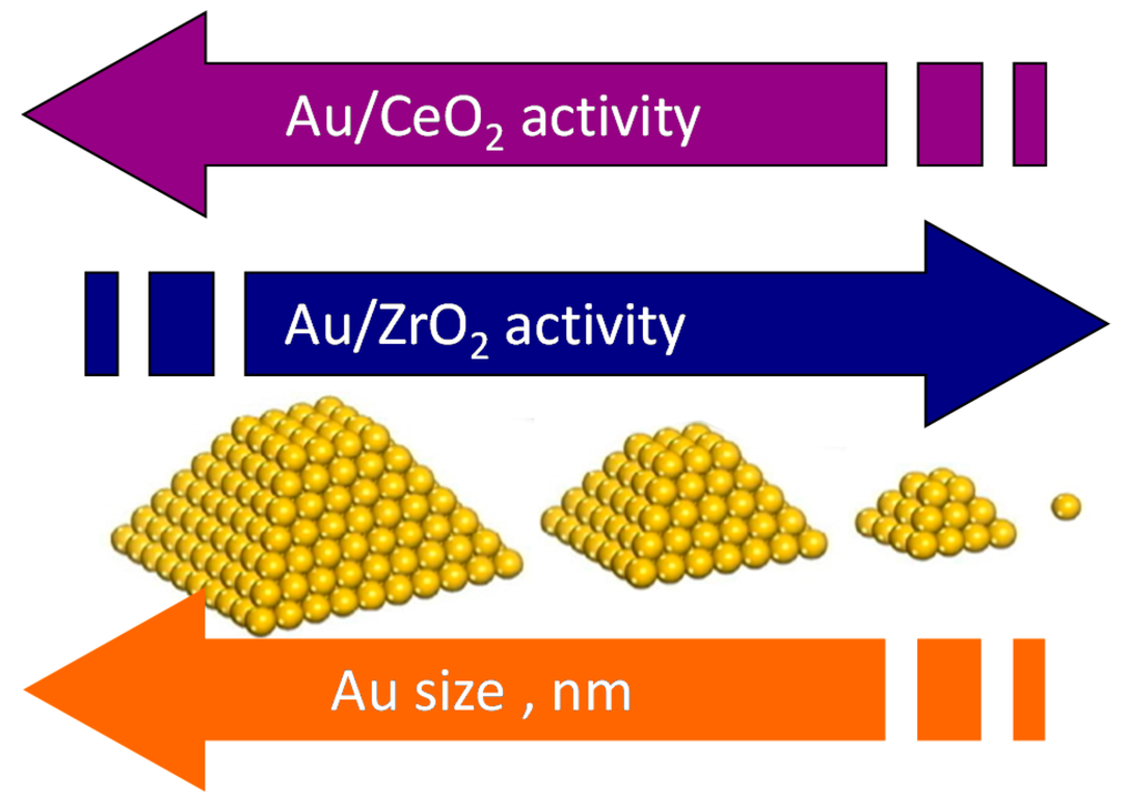 - Manzoli, M.; Boccuzzi, F.; Trevisan, V.; Menegazzo, F.; Signoretto, M.; Pinna, F. Au/ZrO2 catalysts for LT-WGSR: Active role of sulfates during gold deposition. Appl. Catal. B 2010, 96, 28–33. [Google Scholar] [CrossRef]