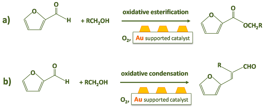 gold catalyst; Au/ZrO2; Au/CeO2; Au/TiO2; Au clusters; Au perimeter sites; furfural; esterification; biomass 1. Furfural as Platform Molecule Coming from Biomass