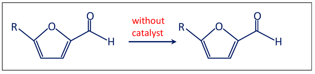 - Firstly, the reaction was performed without the catalyst (Scheme 2). Therefore, furfural, n-octane, methanol and 6 bar of O2 were charged in the autoclave. No traces of furoate, acetal or other products were detected after 3 h of reaction at 120 °C, indicating that the catalyst is needed for performing the reaction.