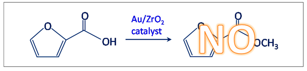 - Another test was carried out in the presence of the Au/ZrO2 catalyst by adopting the usual reaction conditions, but employing furoic acid as substrate instead of furfural (see Scheme 3). The aim was to rule out the furoate formation via furoic acid. No furoate was formed during such test.