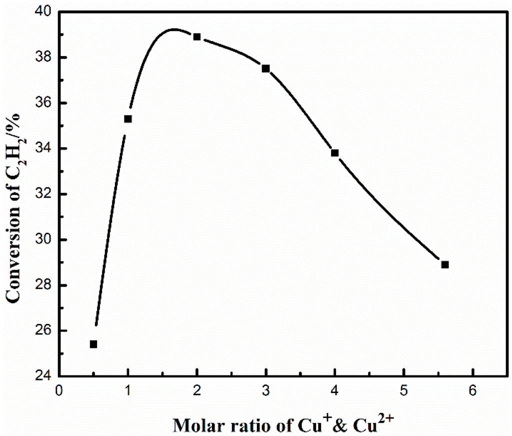 The conversion of C2H2 under different molar ratios of Cu+ and Cu2+.