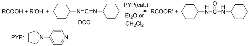 Direct esterification of carboxylic acids with alcohols catalyzed by PYP (4-pyrrolidinopyridine).