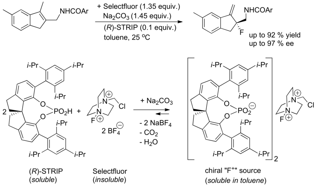acids; amphoteric compounds; asymmetric ion-pair catalysis; asymmetric synthesis; bases; bifunctional catalysts; catalytic enantioselective reactions; conjugate additions; crown ethers; cryptands; cycloadditions; cyclopentenes; electron-rich tertiary amines and phosphines; electrophilic activation; enantioselective electrophilic fluorination; encapsulation; enzymes; N-heterocyclic carbenes; hydrogen-bridging; β-lactams; nucleophilic activation; nucleophilic catalyst; phase transfer catalysis; l-proline; Umpolung 1. Introduction