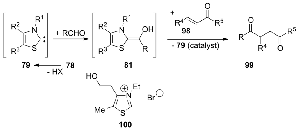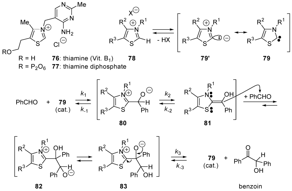 - Breslow, R. On the Mechanism of Thiamine Action 4. Evidence from Studies on Model Systems. J. Am. Chem. Soc. 1958, 80, 3719–3726. [Google Scholar] [CrossRef]