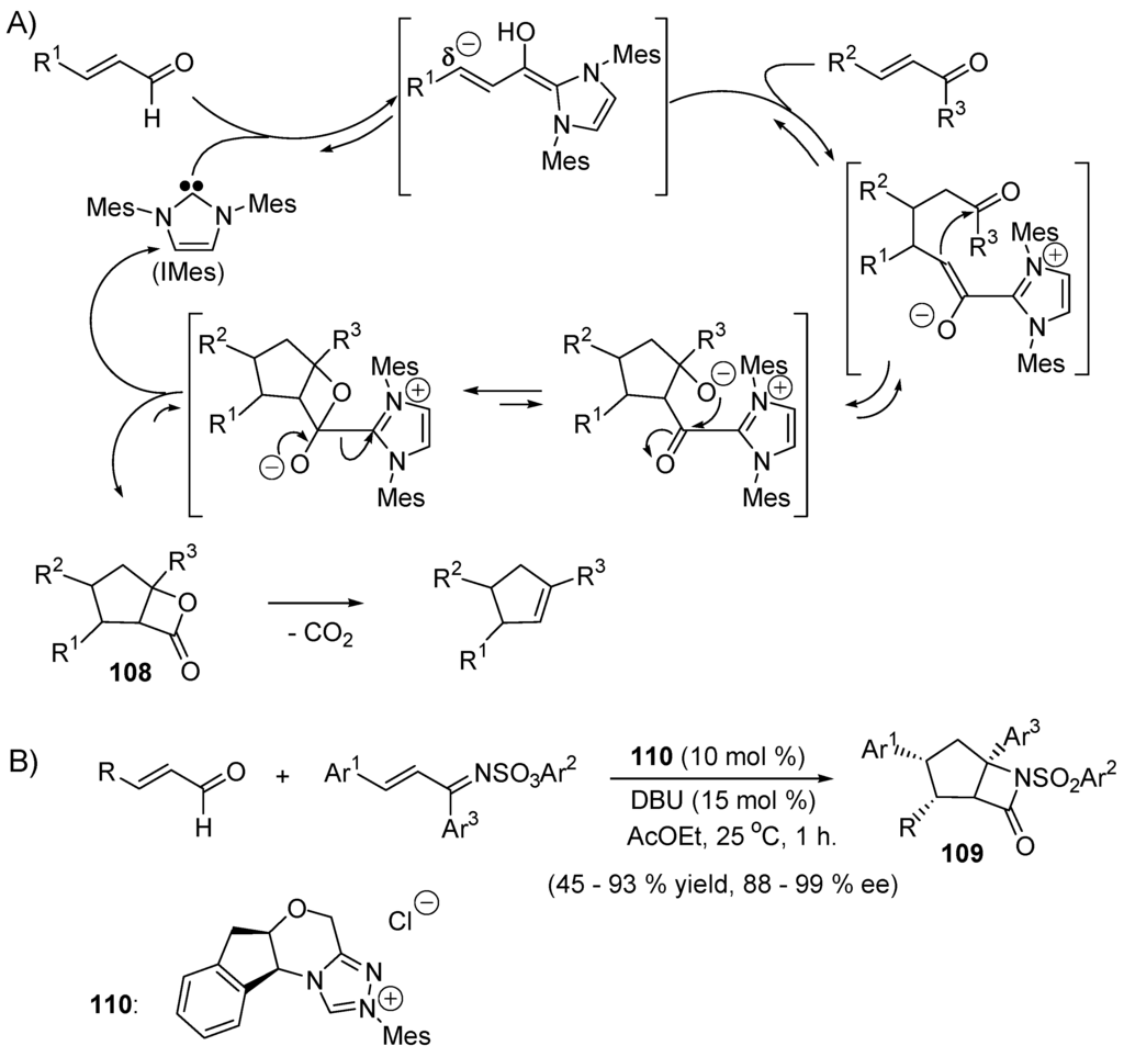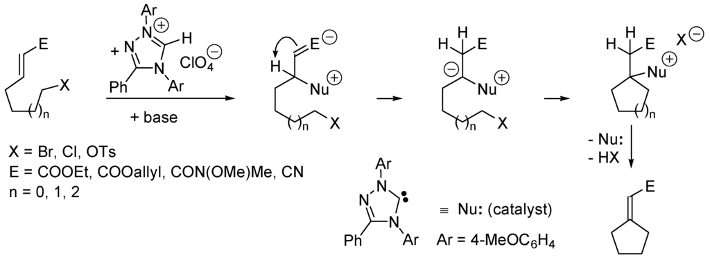 - Fischer, C.; Smith, S.W.; Powell, D.A.; Fu, G.C. Umpolung of Michael acceptors catalyzed by N-heterocyclic carbenes. J. Am. Chem. Soc. 2006, 128, 1472–1473. [Google Scholar] [CrossRef] [PubMed]