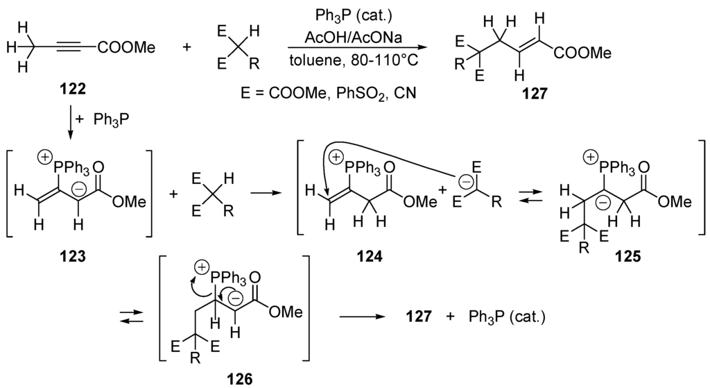 - White, D.A.; Baizer, M.M. Catalysis of Michael Reaction by Tertiary Phosphines. Tetrahedron Lett. 1973, 3597–3600. [Google Scholar] [CrossRef]