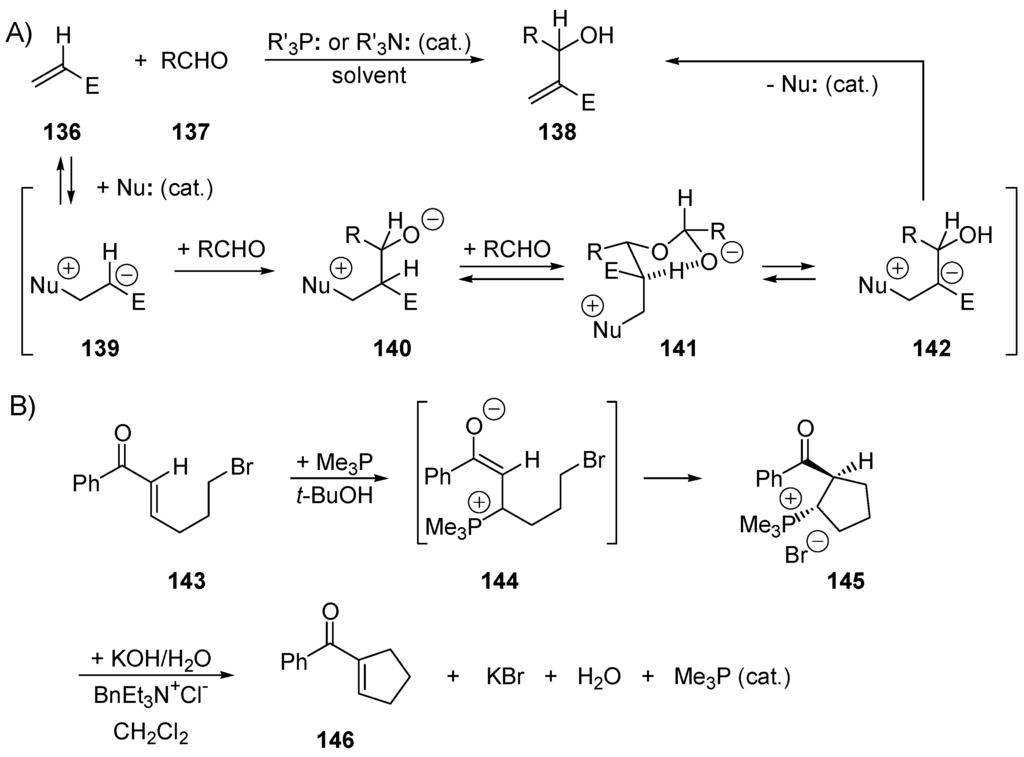 - Trost, B.M.; Li, C.J. Novel Umpolung in C–C Bond Formation Catalyzed by Triphenylphosphine. J. Am. Chem. Soc. 1994, 116, 3167–3168. [Google Scholar] [CrossRef]