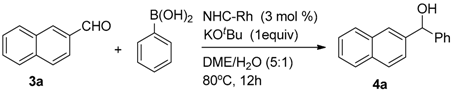 Chicago/Turabian StyleHe, Weiping, Bihui Zhou, Jie Li, and Jianyou Shi. 2016. "Synthesis of New Chiral Benzimidazolylidene–Rh Complexes and Their Application in Asymmetric Addition Reactions of Organoboronic Acids to Aldehydes" Catalysts 6, no. 9: 132. https://doi.org/10.3390/catal6090132