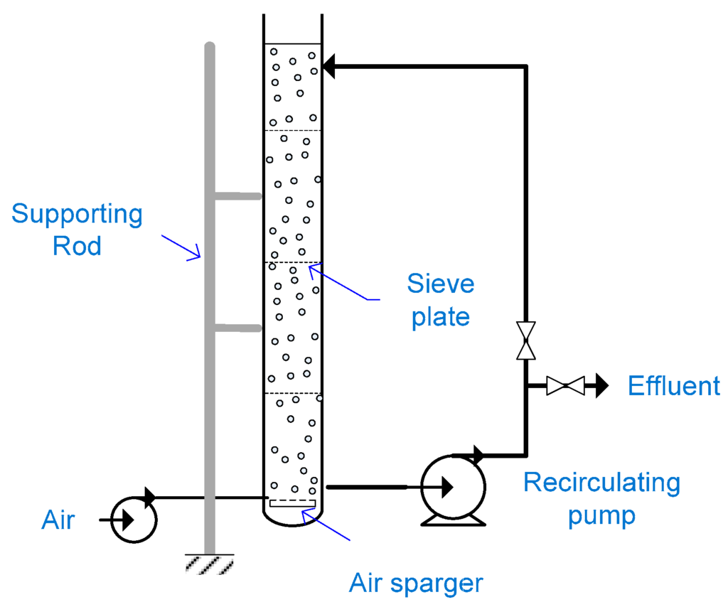 | Tubular | Pretreated groundwater | BTEX b | 530 L | 1993 | Tyndall Air Force Base, FL, USA | [70] |