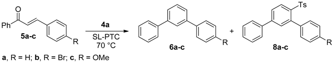 Further work is in progress in order to increase the yield of meta-terphenyls 6 involving the use of allylsulfone 4a and ascertain the role of PTC in the chemoselective reaction.
