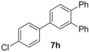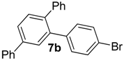 4′-phenyl-1,1′:2′,1′′-terphenyl (7a): yield 66%, mp 120.5–121 °C, lit. [] mp 121–122 °C. 1H NMR (300 MHz, CDCl3): δ 7.75–7.69 (m, 4H), 7.59–7.48 (m, 3H), 7.44–7.40 (m, 1H), 7.28–7.24 (m, 10H).