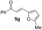 Chalcones 5a and 5c are commercially available. Other chalcones have been prepared by the Claisen-Schmidt condensation of methylketones with aldehydes [] and their spectroscopic and physical properties matched those reported in literature: