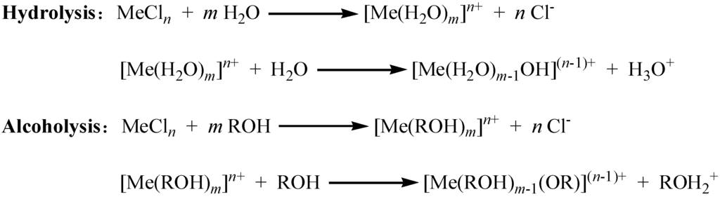 Presumed hydrolysis/alcoholysis reaction of metal chloride in the reaction medium.