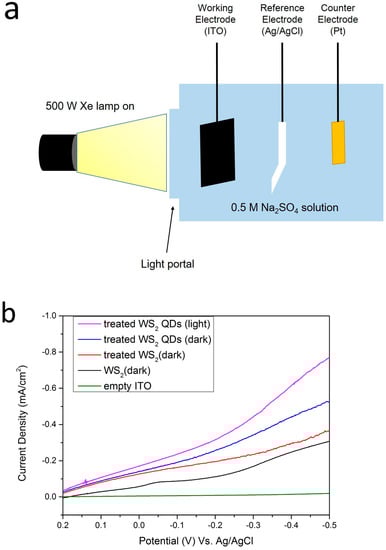 - Zhao, X.; Ma, X.; Sun, J.; Li, D.H.; Yang, X.R. Enhanced Catalytic Activities of Surfactant-Assisted Exfoliated WS2 Nanodots for Hydrogen Evolution. ACS Nano 2016, 10, 2159–2166. [Google Scholar] [CrossRef] [PubMed]