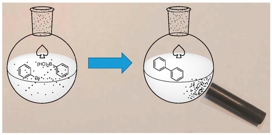 Amongst the solid supports utilized for palladium, and other catalytic metals for that matter, magnetic particles have become quite popular. This is predominantly due to their easy removal from the reaction mixture after the reaction has reached completion [16]. Due to the magnetic beads, it is simple to apply an external magnetic field and decant the reaction mixture off (Figure 1). The catalyst can then be washed and used again in the next cross-coupling reaction. The ability for the various catalysts to tolerate many rounds of recycling then becomes an important parameter to consider.