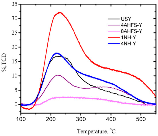 NH3-TPD profiles of AHFS- and alkaline-treated USY.