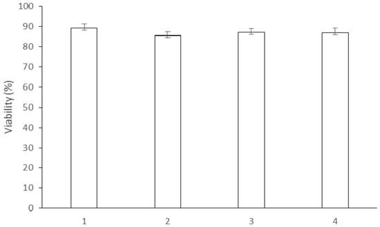 Cell viability prior to and after biotransformation was measured by the intake of PI by the necrotic cells [8]. The viability of immobilized cells of E. coli with CHMO under different conditions and after 10 repeated biotransformation cycles (Figure 4) was evaluated. The viability in all cases remained within an 85−95% range.