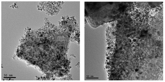 Figure 6 shows the typical TEM micrographs for 10 wt % Ni catalysts supported over the parent HZSM-5 and the hierarchical HZSM-5-1. The mean sizes of Ni particles in both samples were similar and were distributed in a range of 8–11 nm by counting ca. 50–100 particles. Similar particle sizes for impregnated metal (Ru or Ni) supported over various hierarchical zeolites have been proposed in previous studies [20,21], suggesting that the hierarchical zeolite itself plays crucial roles in reaction activity. Table 2 summarizes the physicochemical properties of the Ni/HZSM-5 catalysts.