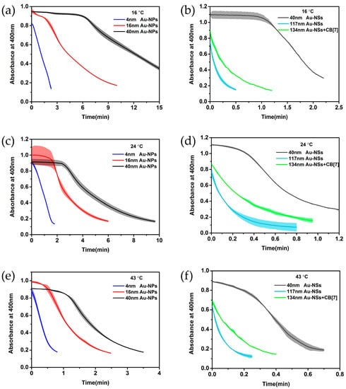 | 134 nm Au-NSs + CB[7] | 1.517 ± 0.152 | - | 1.850 ± 0.073 | - | 3.526 ± 0.100 | - | 24.042 ± 1.621 |