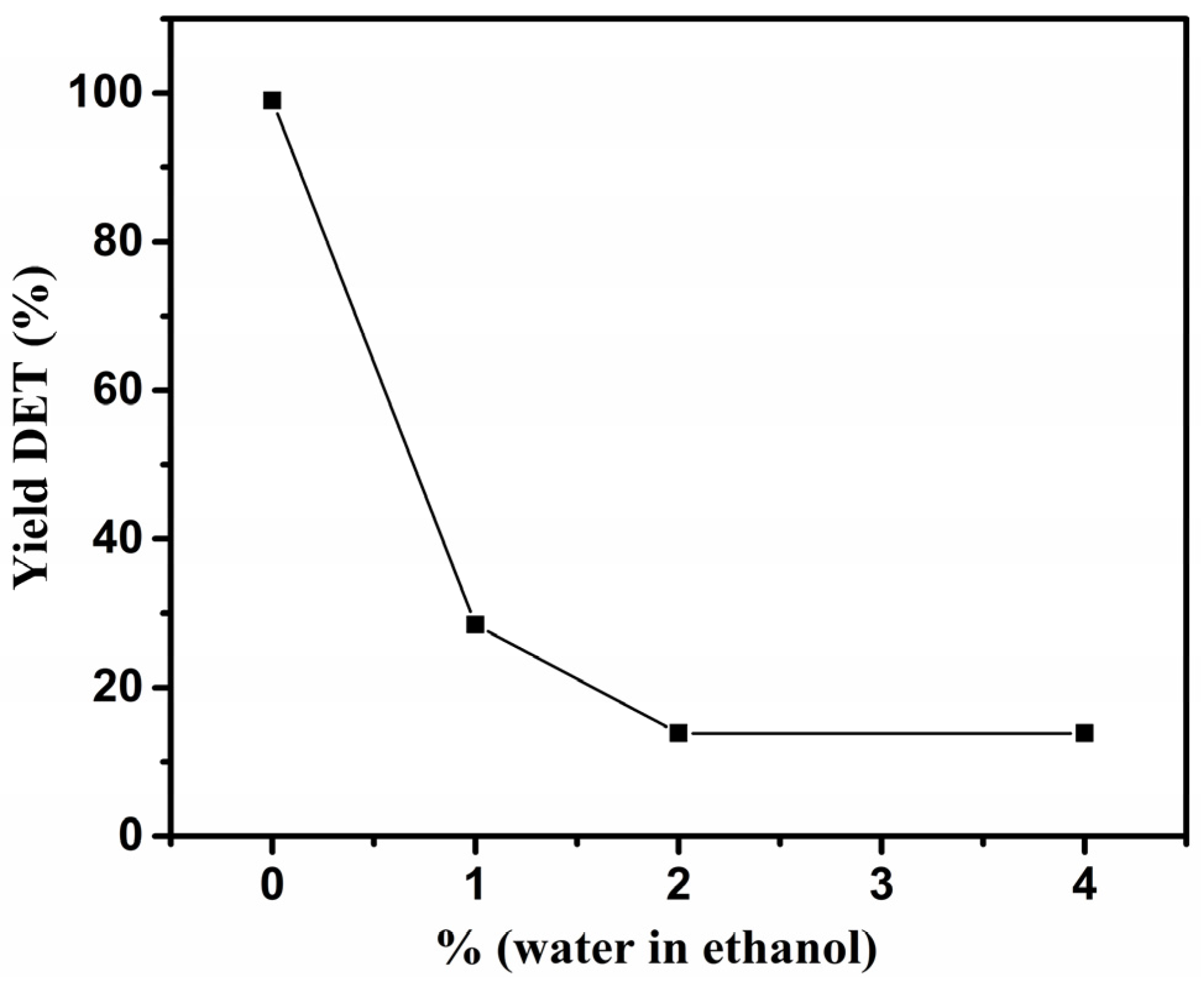 The yield of DET (in %) obtained from exp1 to exp4 was plotted as a function of the percentage of water in the ethanol/water mixtures used in the reactions, as shown in Figure 2.