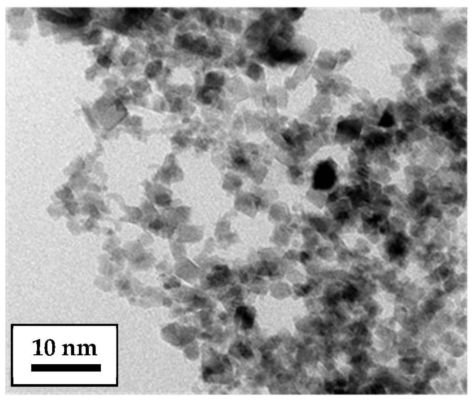 Figure 1 shows a representative agglomerated nanostructure, in which it can be seen that the typical particle size of ~6 nm (Table 1), which was calculated assuming a spherical shape [20], corresponds reasonably well to the equiaxed CeO2 octahedra in the size range of 2–7 nm.