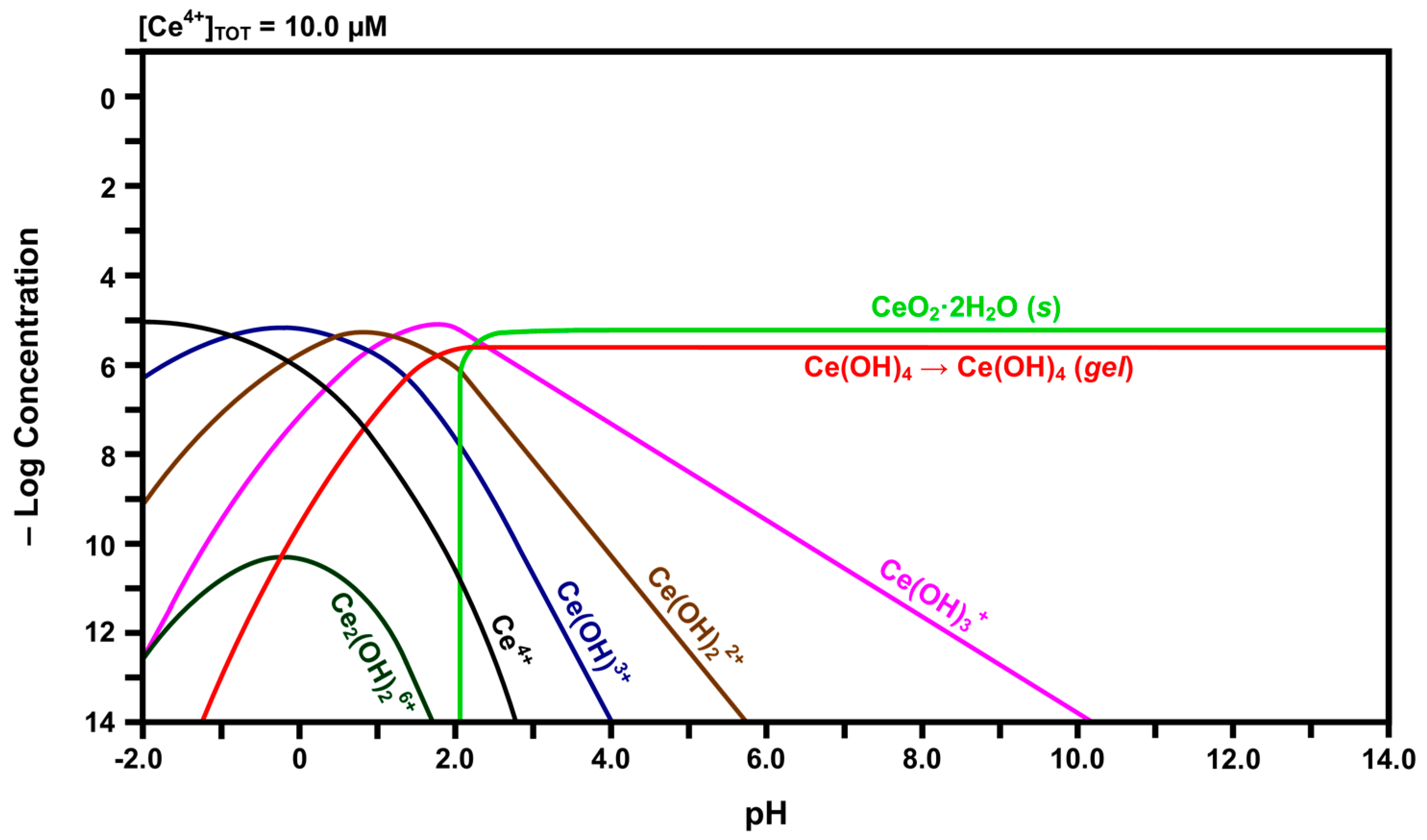 Calculated speciation diagram of Ce4+-H2O.