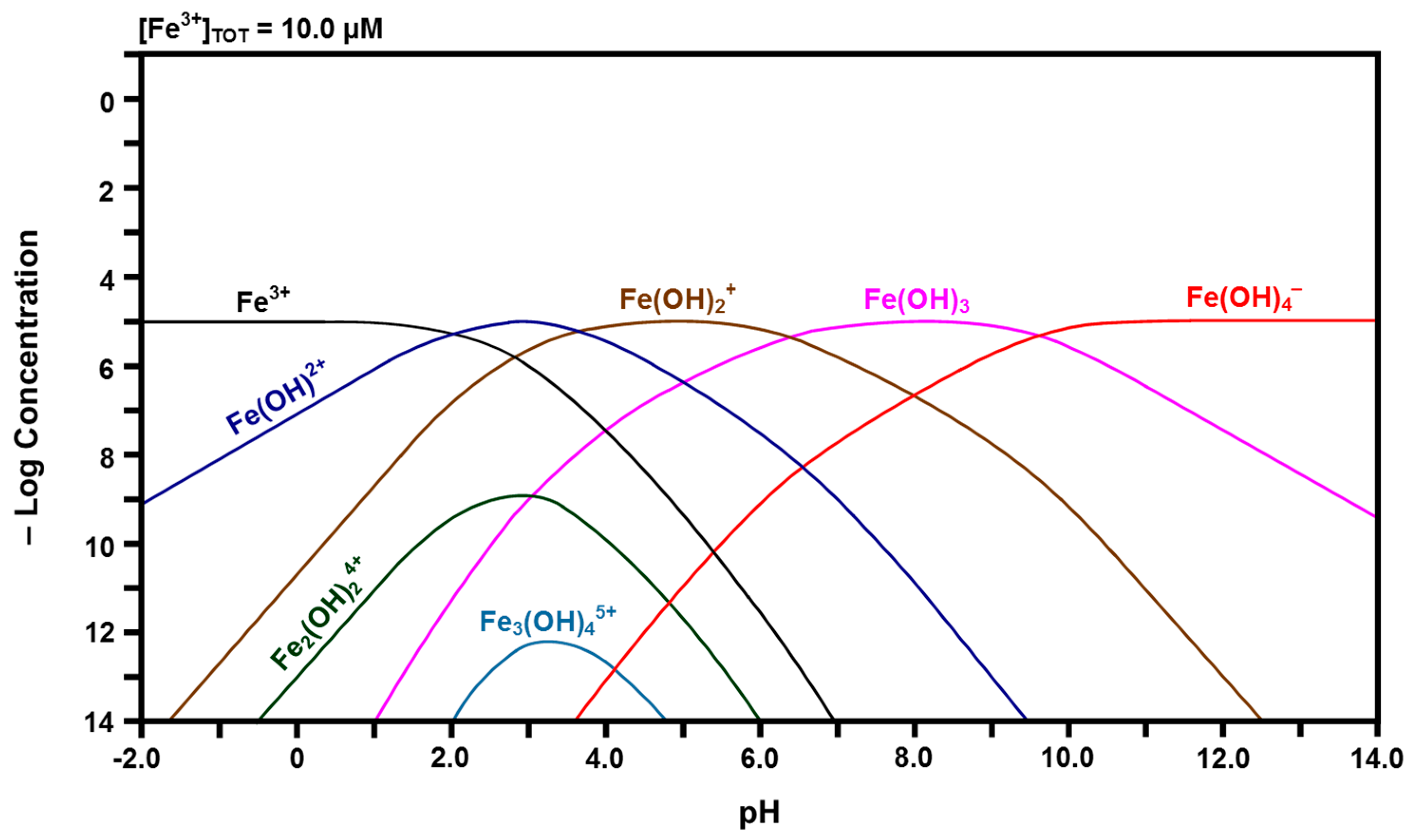 Calculated speciation diagram of Fe3+-H2O.