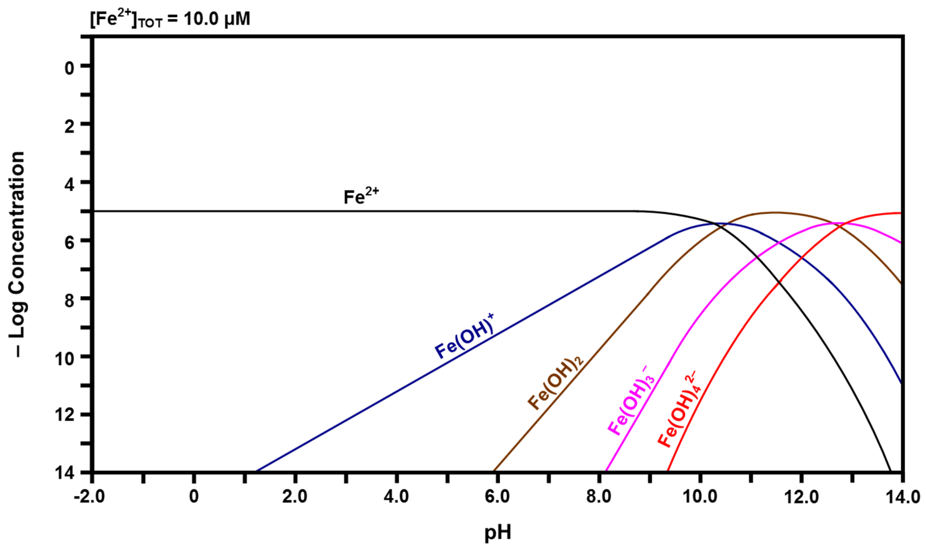 Calculated speciation diagram of Fe2+-H2O.